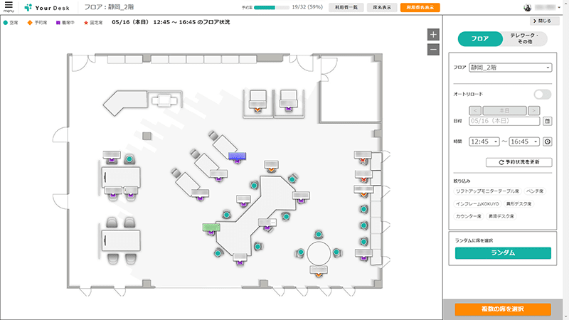 現在、静岡と浜松のオフィス合わせて3フロア約170名が「YourDesk」を利用しています。